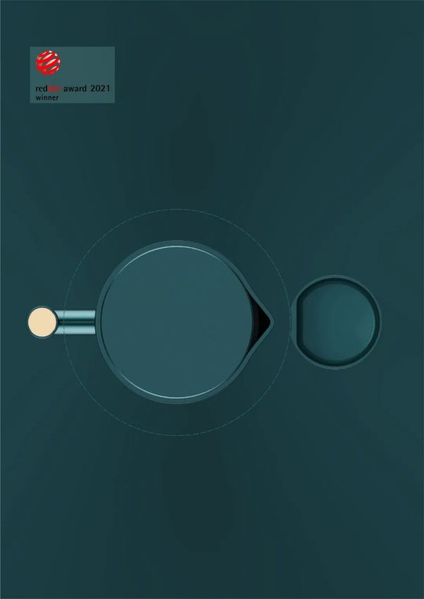 极简的外形设计,采用圆形为基本元素,整体元素统一,简约高端。由于主要定位是盲人使用,外观上没有过多的外形修饰,简约为主,更加注重人机性。壶盖开启按键设置在把手上方,很容易就能触摸到,即使是盲人使用操作,也非常便捷。同时按键采用金属电镀工艺,其触感不同于塑胶材质,摸起来有冰凉的感觉,方便盲人触摸识别,同时点缀整体外观,提升了产品的质感。