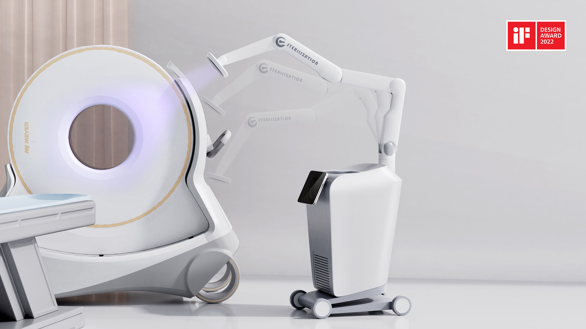 加利弗策划设计的医疗器械作品《机械臂杀菌机器人》荣获德国IF 2022设计大奖。IF奖是由德国历史最悠久的工业设计机构举办,与红点奖(Red Dot)和IDEA奖并称为世界三大设计奖。